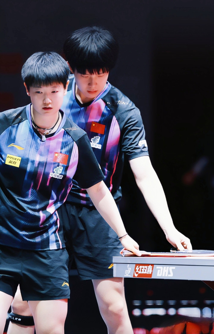 江苏姐弟组合,本场比赛面对强大的奥运铜牌得主韩国林申组合,打出了让人震惊的过程和结果。在大分1-2落后的背动形势下,陈垣宇仿佛瞬间长大,真的做到了肖战指导说的“就像是林诗栋一样”,坚定勇敢的扛起了进攻重任,在蒯曼的强有力掩护下,源源不断的发出了正手高质量轰击。垣曼组合直落两局,一举完成逆转,把长年稳居TOP3的林申组合送回老家。